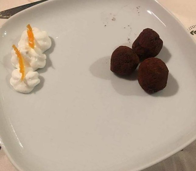 Tritare finemente nel frullatore il cioccolato e successivamente metterlo in una ciotola, aggiungere poi i tuorli, il burro fuso, il brandy e la panna e mescolare bene formando un composto omogeneo.