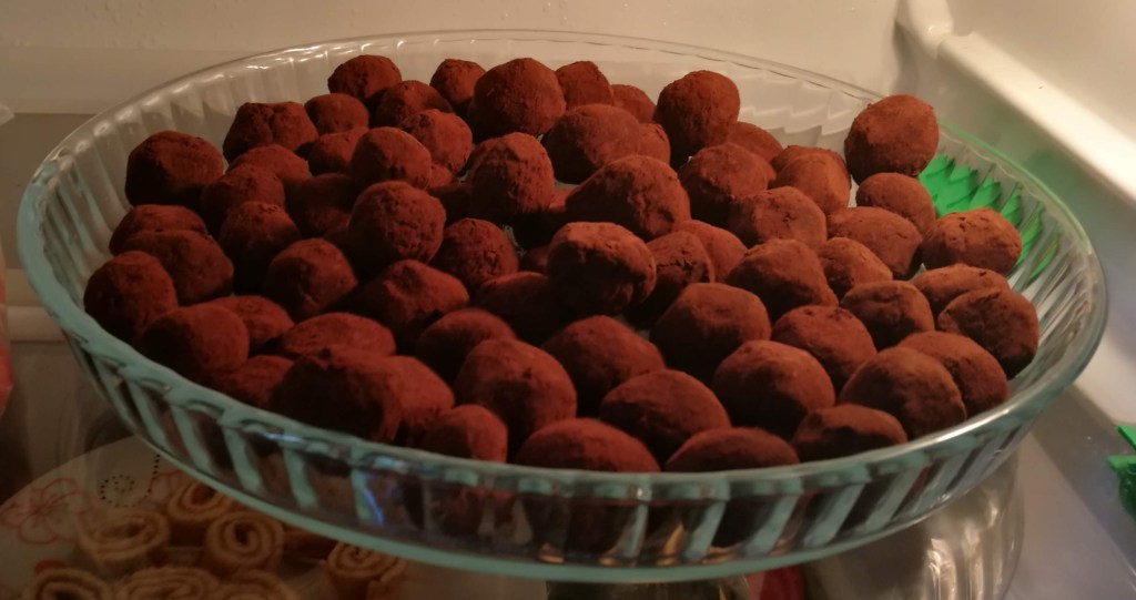 Formate delle palline con le mani e passatele nel cacao in polvere e adagiatele dentro a dei pirottini oppure direttamente su un vassoio e fatele riposare in frigo per almeno 2 ore.