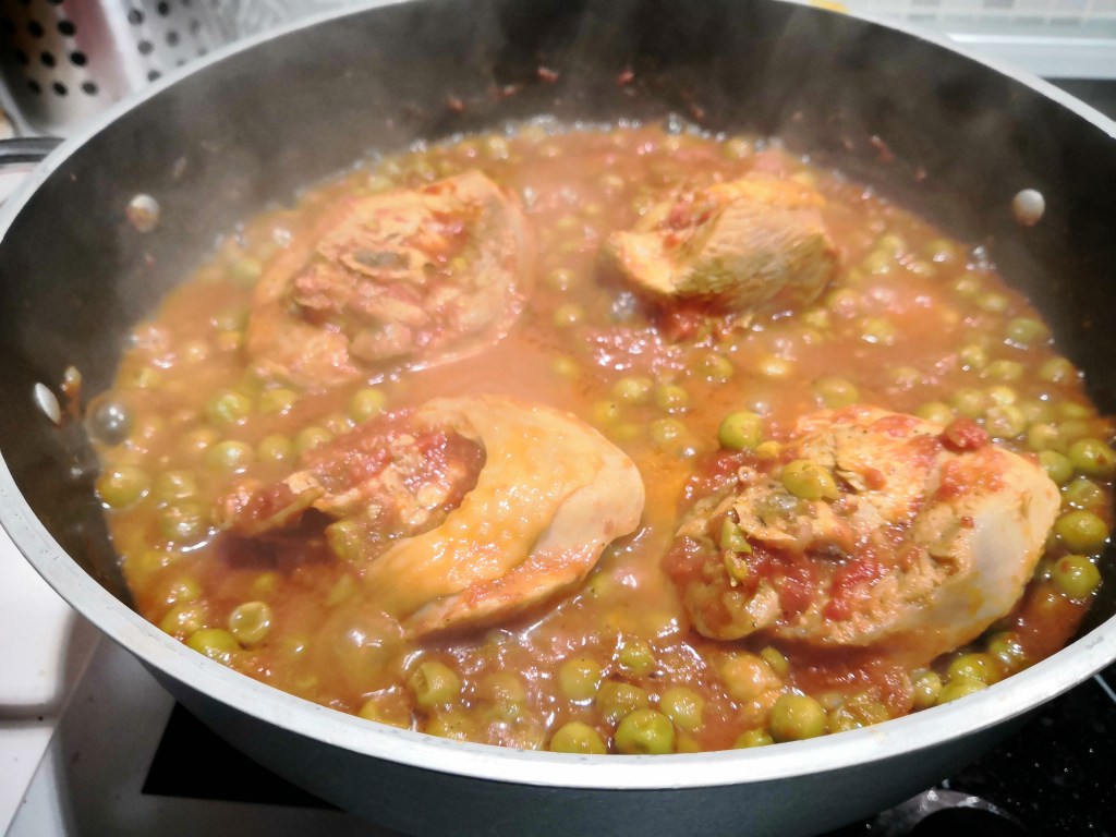 In una padella antiaderente mettere a scaldare dell’olio di oliva e fate imbiondire lo scalogno tagliato finemente, aggiungere i piselli ancora congelati ed aggiungere mezzo bicchiere di acqua e coprire con un coperchio. Dopo circa 5 minuti aggiungere gli ossibuchi precedentemente salati e pepati e fateli rosolare per 2 minuti per lato a fuoco abbastanza alto. Una volta rosolato gli ossibuchi aggiungere la passata di pomodoro ed aggiustare di sale e pepe, fate cuocere a fuoco lento e coperto per circa 20 minuti.
