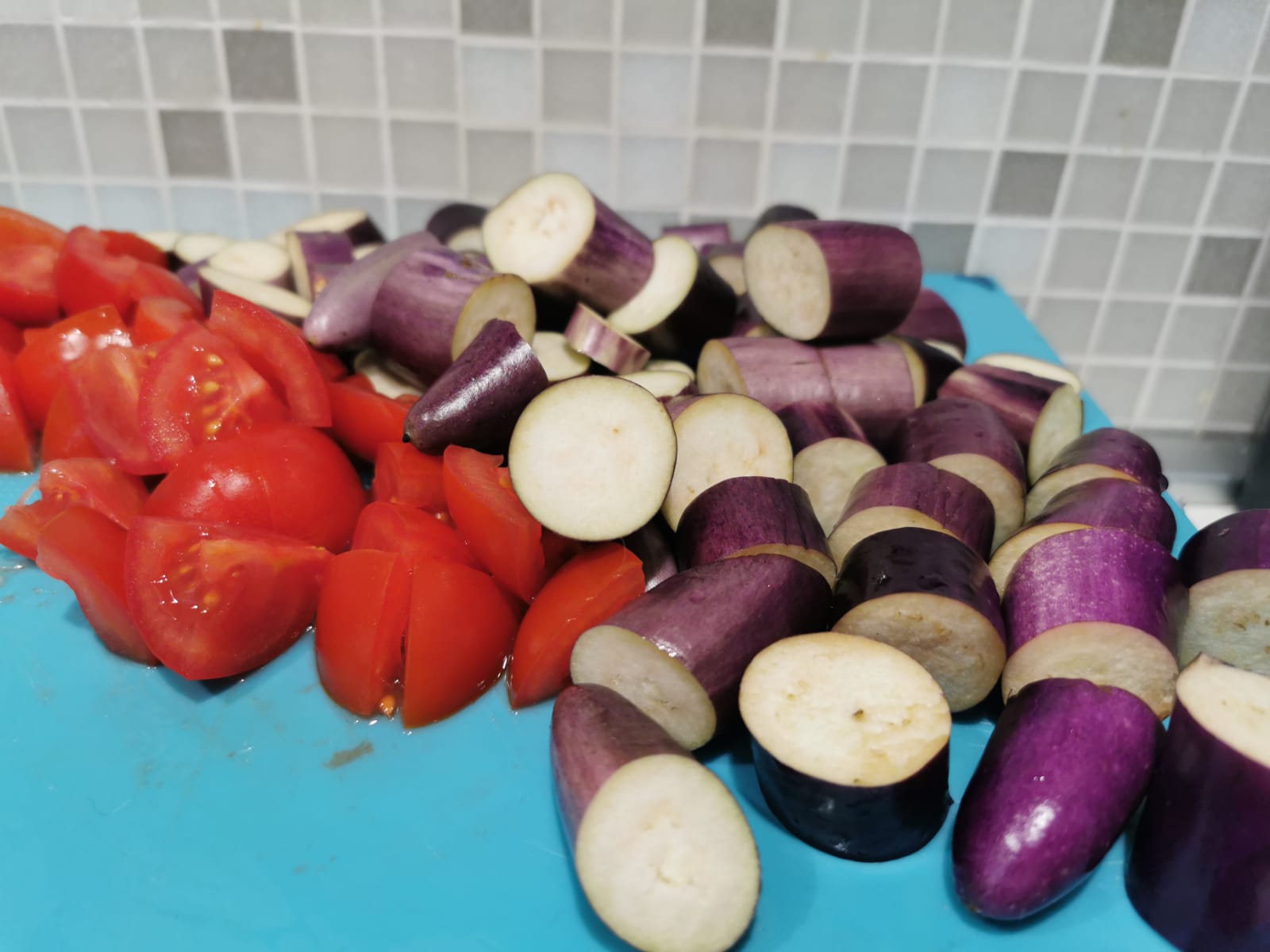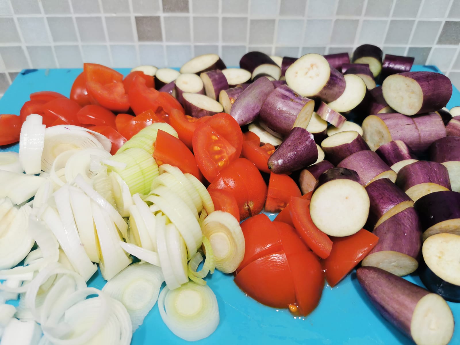 Lavare e tagliare tutte le verdure, successivamente mettete le melanzane tagliate in una teglia piana e cospargetele di sale così da far estrarre l’acqua in eccesso, asciugandole con della carta assorbente dopo circa 30 minuti.